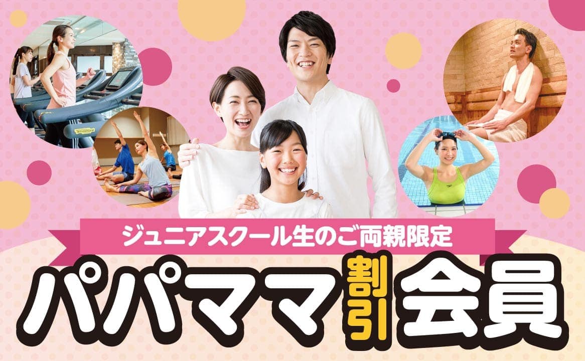 【パパママ割引】お子さまがジュニアスクールに在籍で、保護者さまのフィットネスプランがお得に!ぜんぶ使えて月額5,676円!